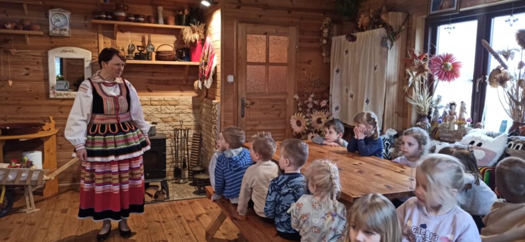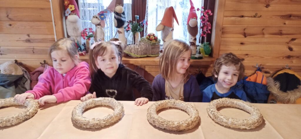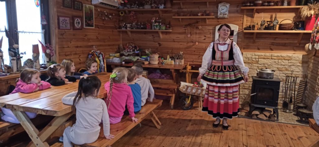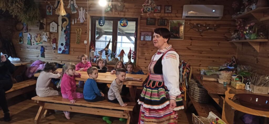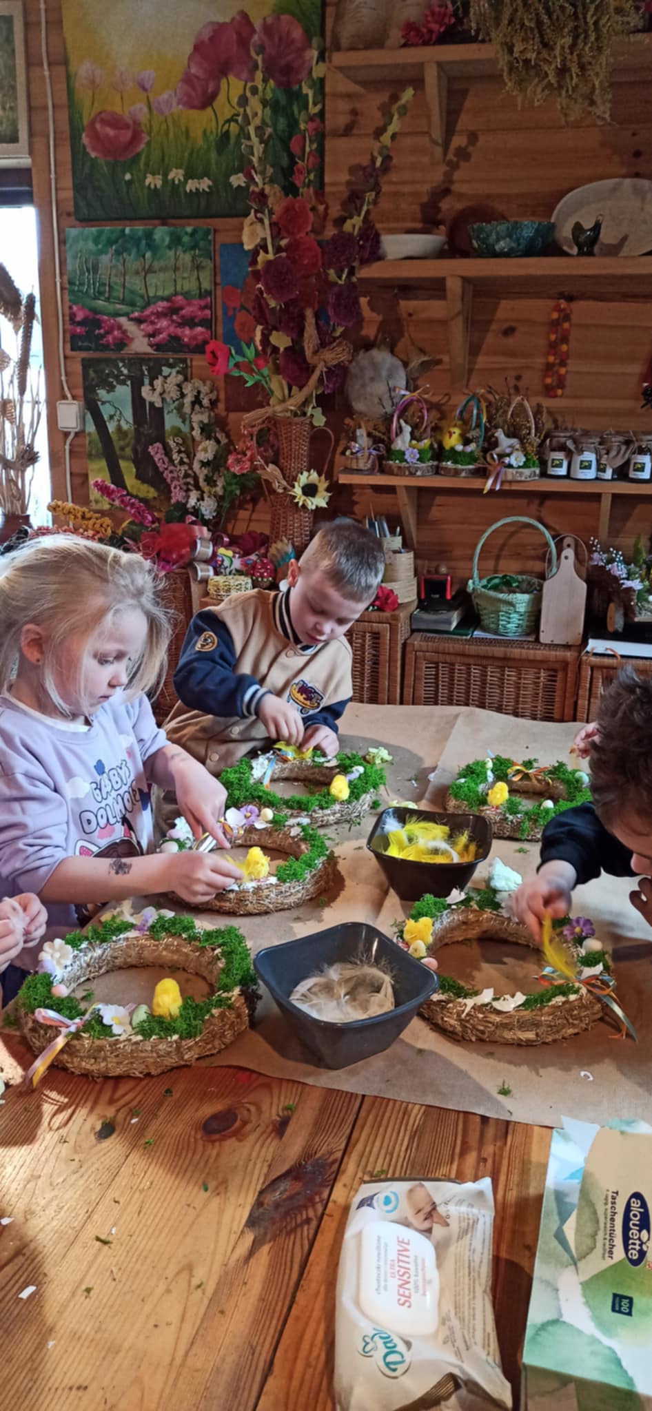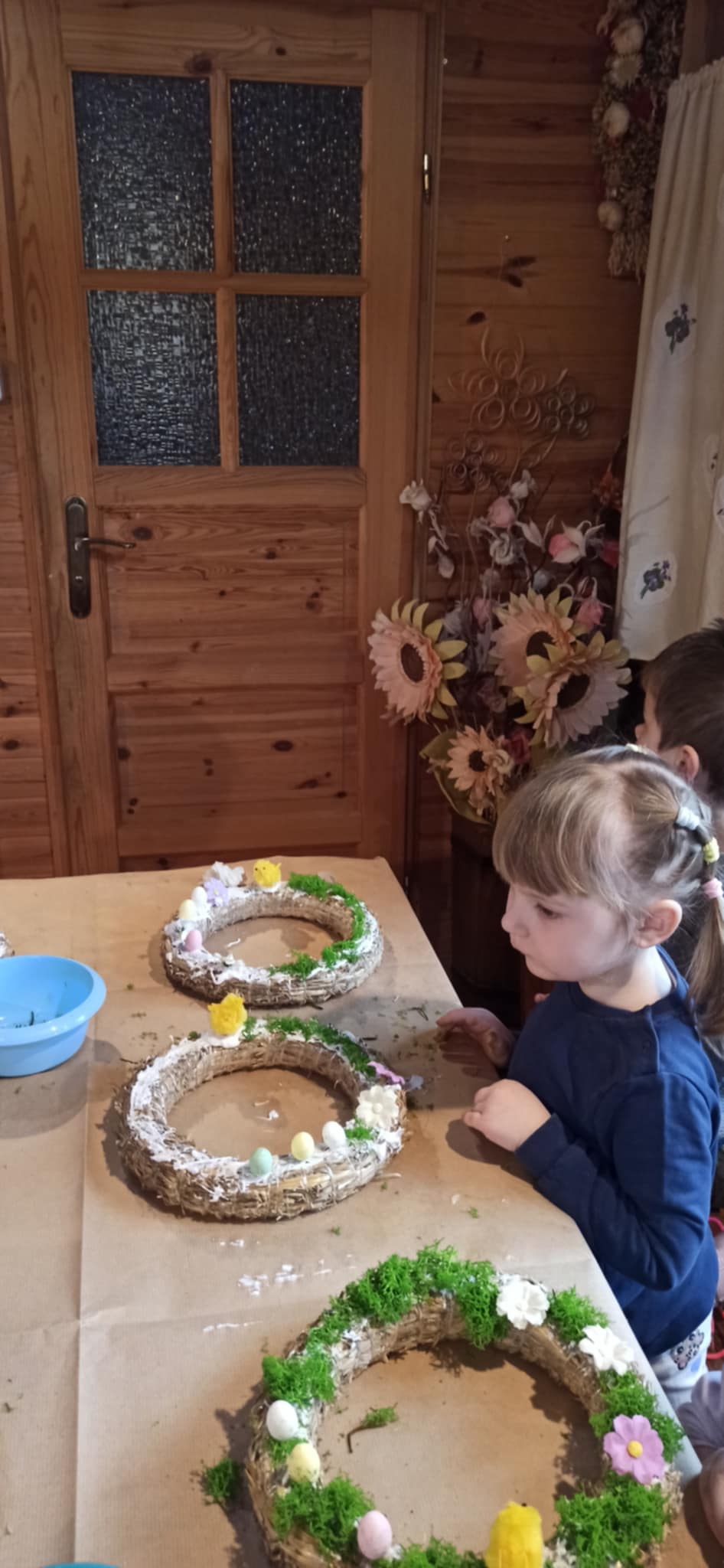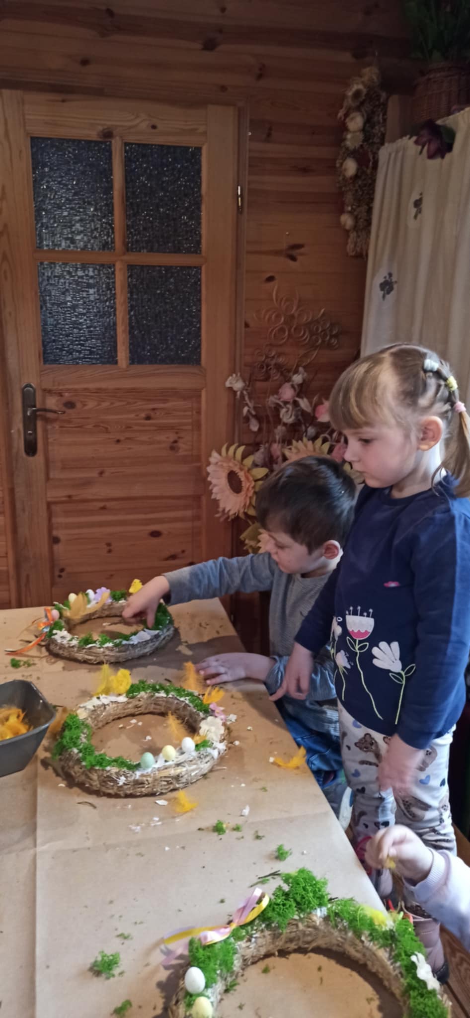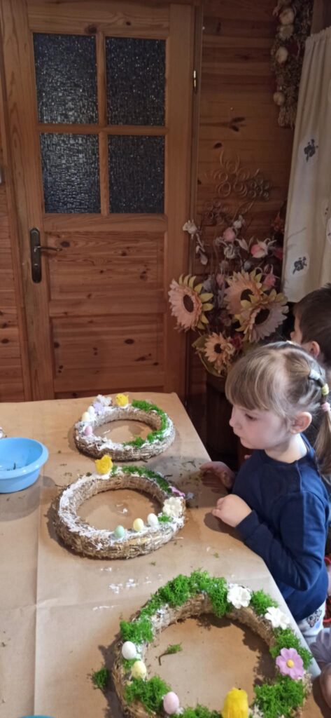 Grupa Kotki odwiedziła Panią Asię w Domu Tradycji Ludowej, aby razem stworzyć piękne stroiki wilekanocne. Pani Joanna pokazała dzieciom kilka tradycji ludowych związanych z naszym regionem i stworzyła z dziećmi prawdziwe dzieła sztuki.