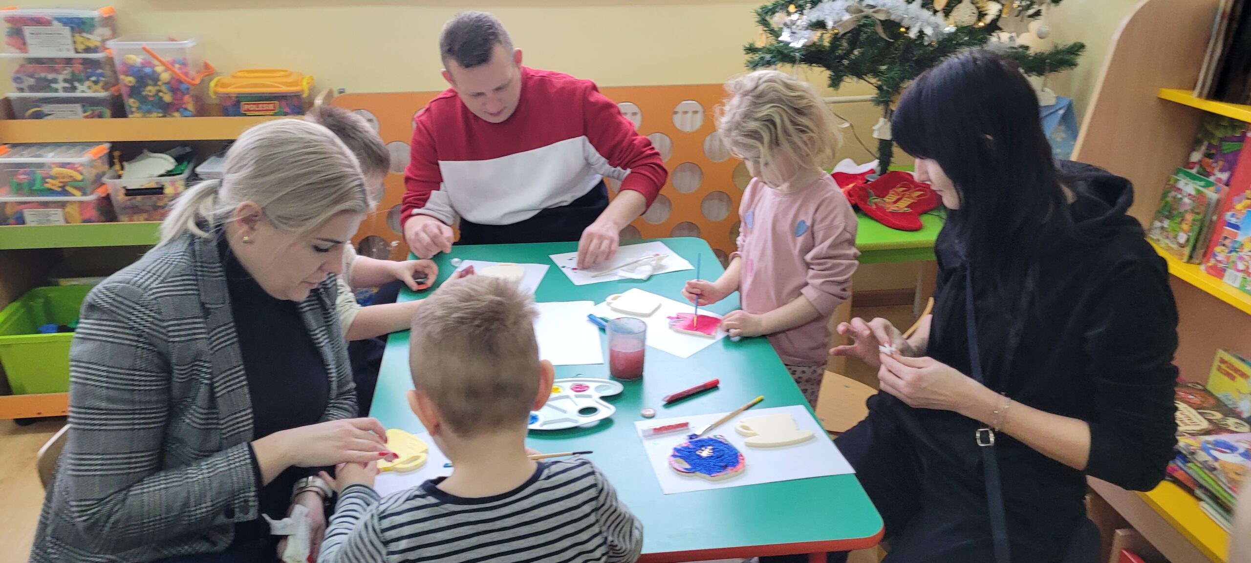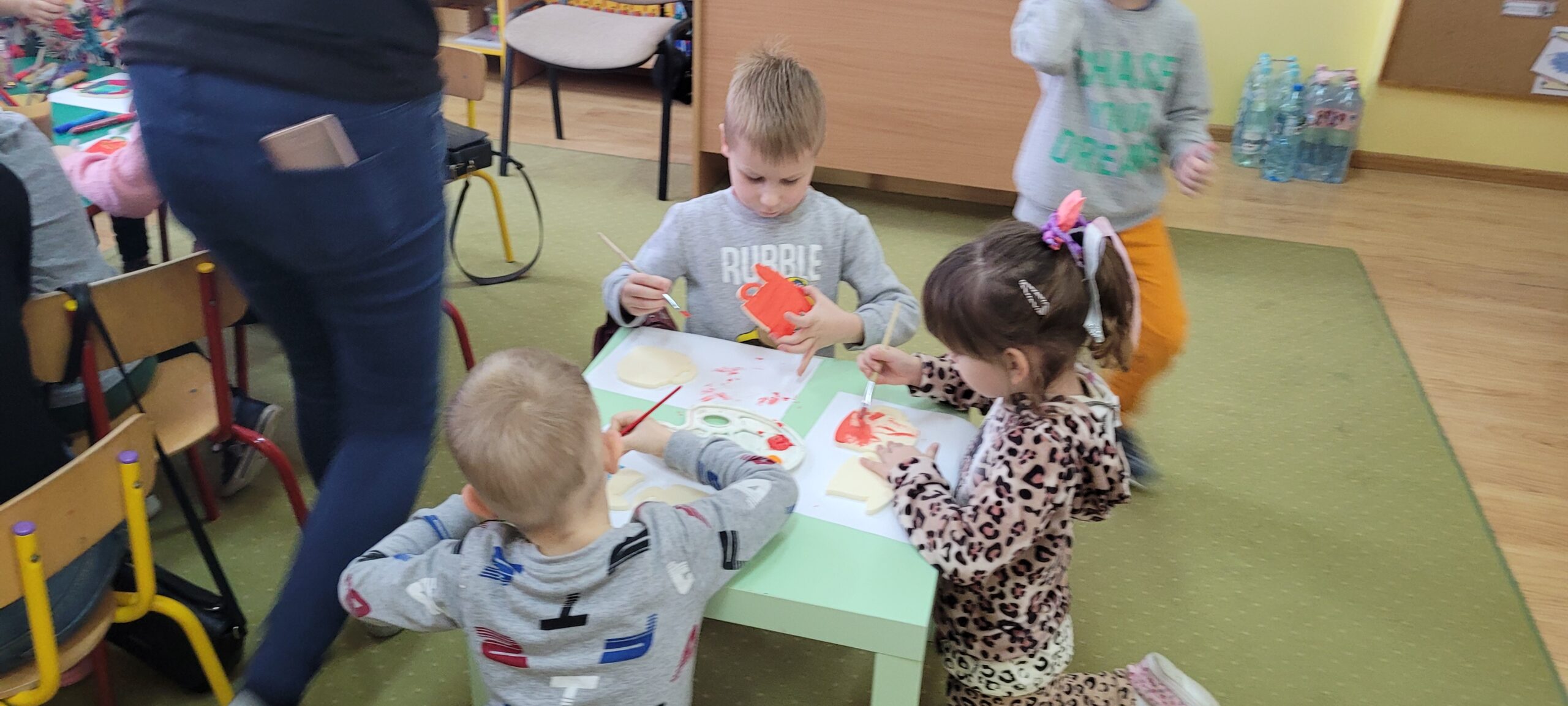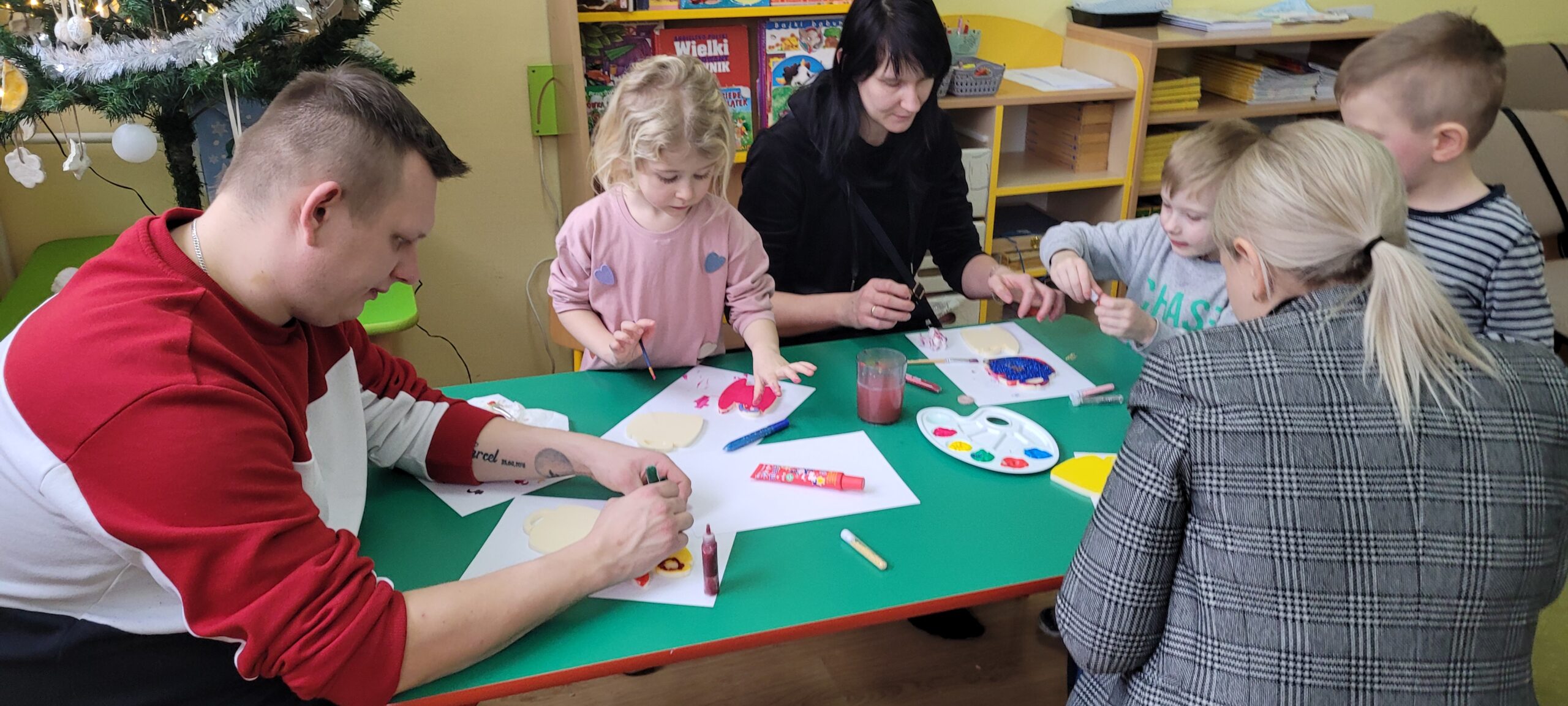 W czwartkowe popołudnie 11.01.2024 r. dzieci z grupy „Żabki” wraz ze swoimi rodzicami spotkały się na warsztatach plastycznych.Celem zajęć było przygotowanie wraz z rodzicami upominków z okazji zbliżającego się ,,Dnia Babci i Dziadka”. Wspólnie ozdabialiśmy pamiątkowe magnesy w kształcie kubka i filiżanki. Wspaniała zabawa i pracowity czas dla wszystkich.
