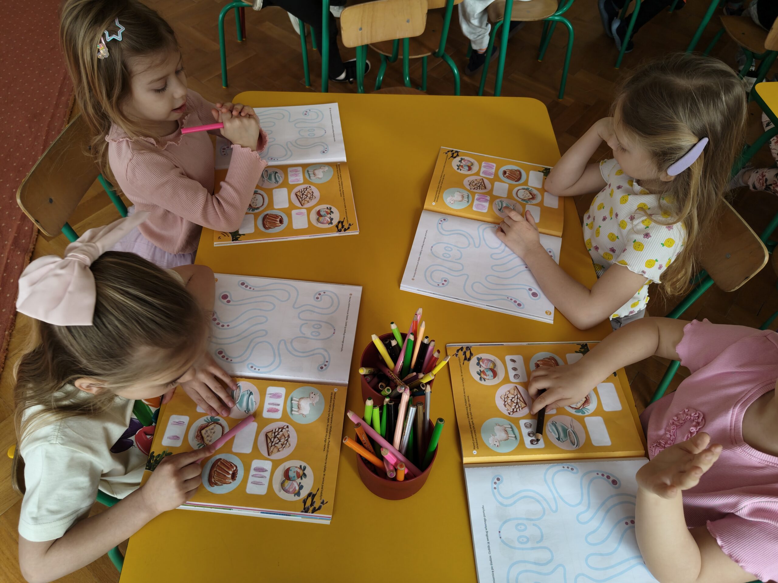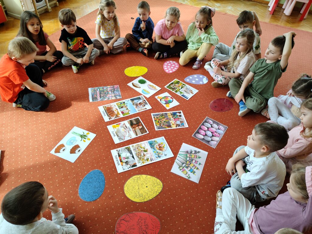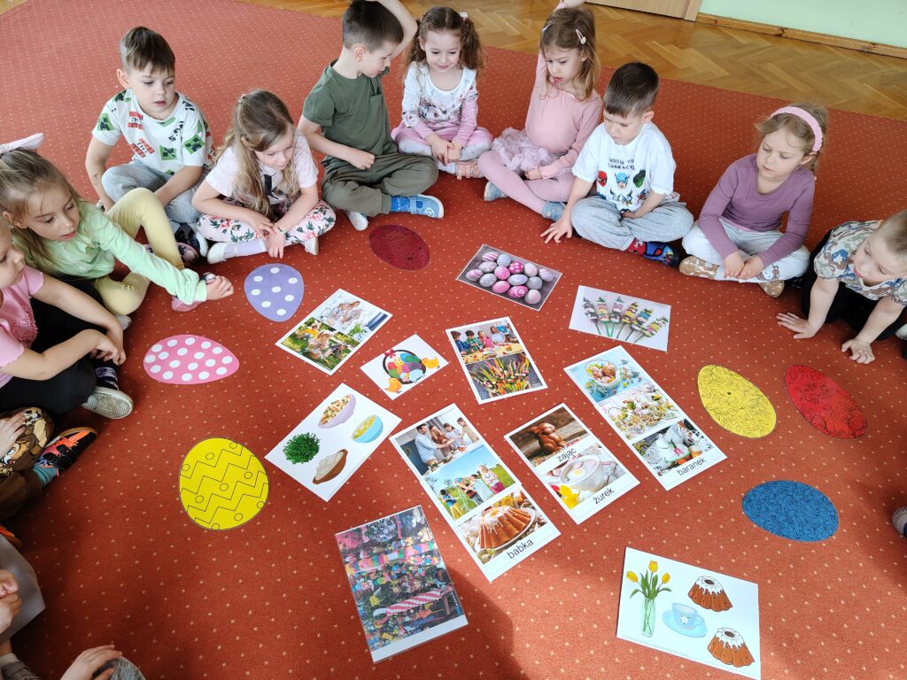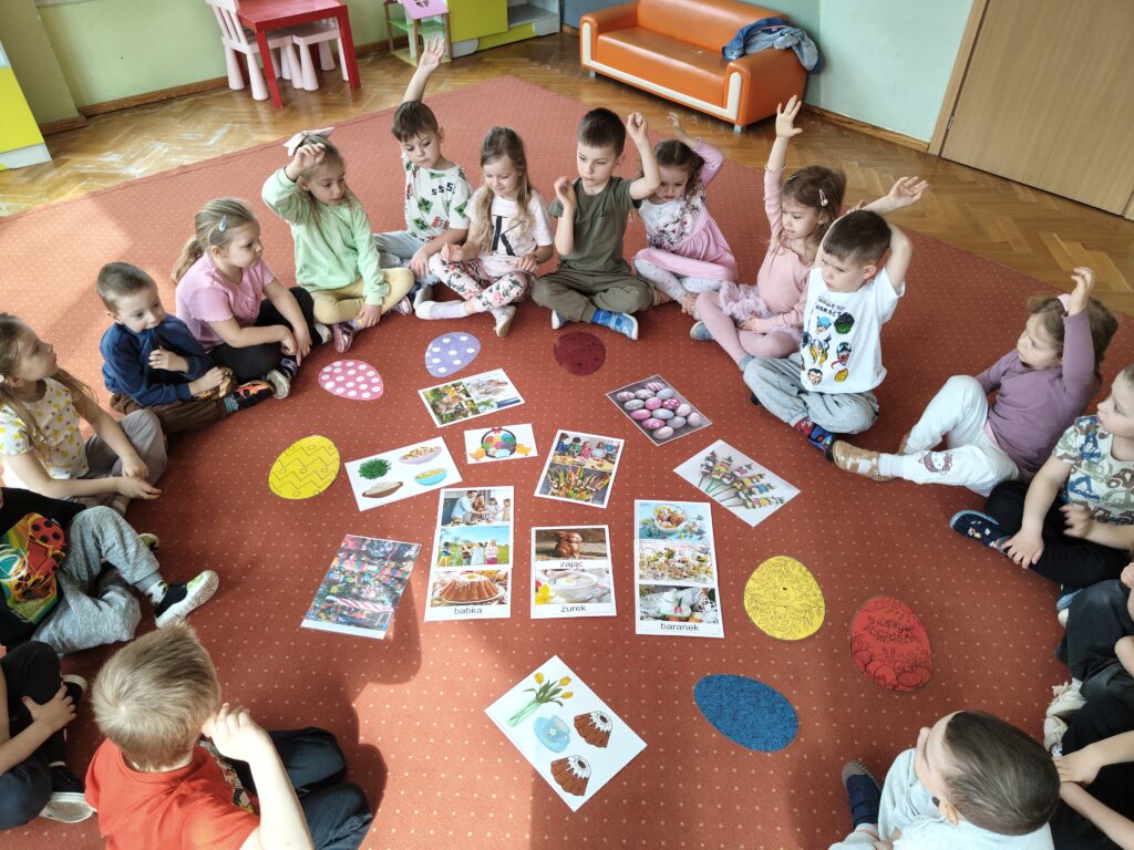 Miniony tydzień był dla Pszczółek czasem poznawania tradycji wielkanocnych. Dzieci, poprzez zabawę i naturalną ciekawość świata, przybliżały sobie elementy polskiej kultury, zwłaszcza ludowej. Celem zajęć było rozwijanie u dzieci funkcji poznawczych, kreatywności, wyobraźni, logicznego myślenia, jak również umiejętności matematycznych, językowych; kształtowanie słuchu muzycznego, ćwiczenie percepcji wzrokowej oraz umiejętności społeczno-emocjonalnych.