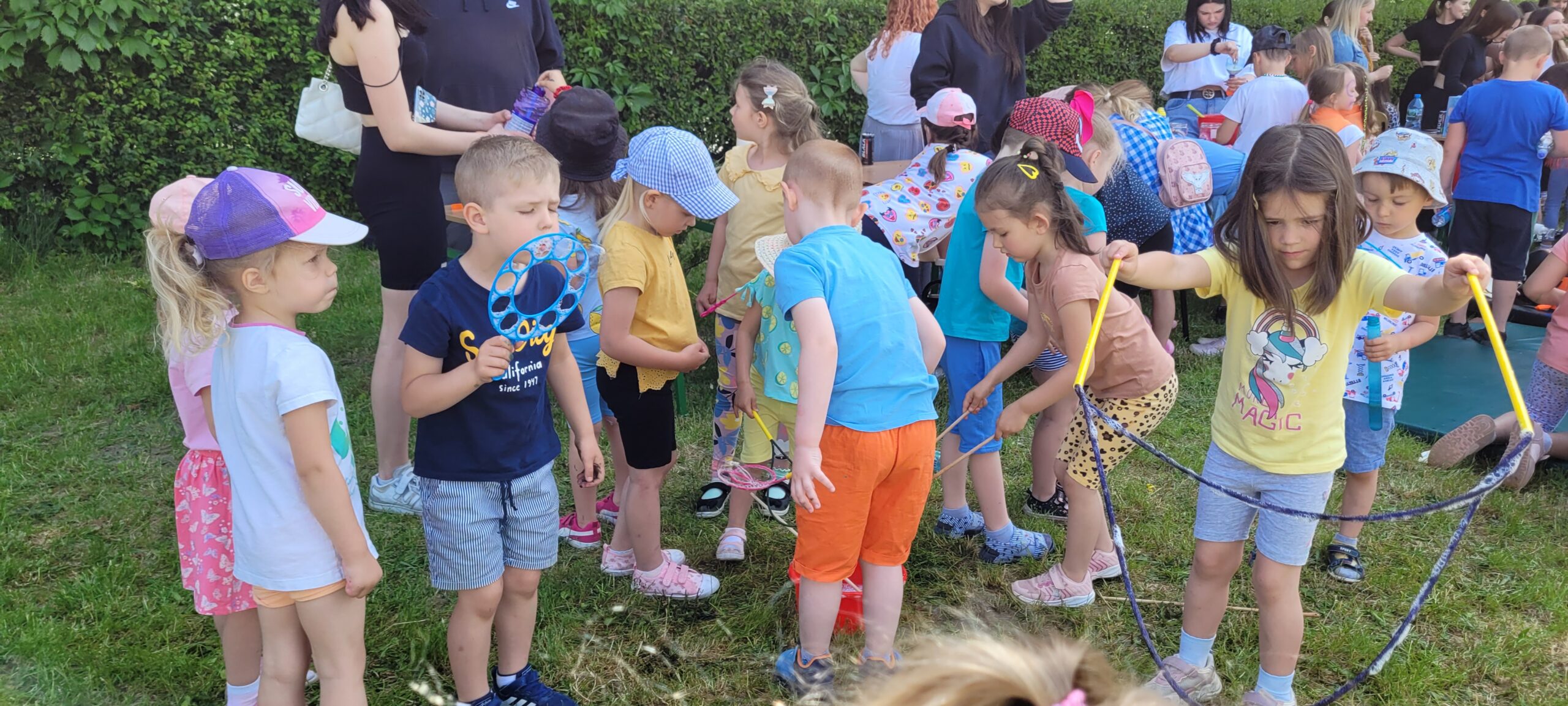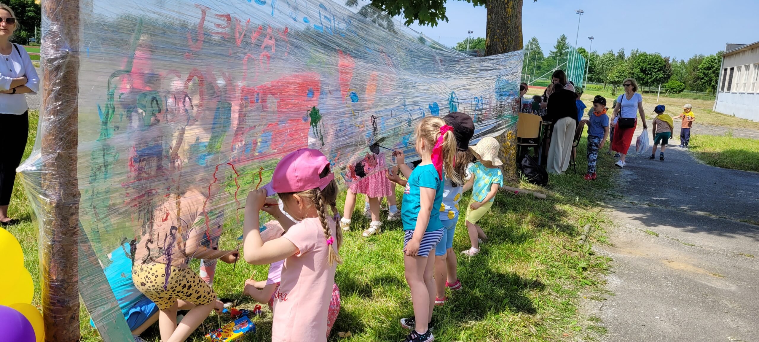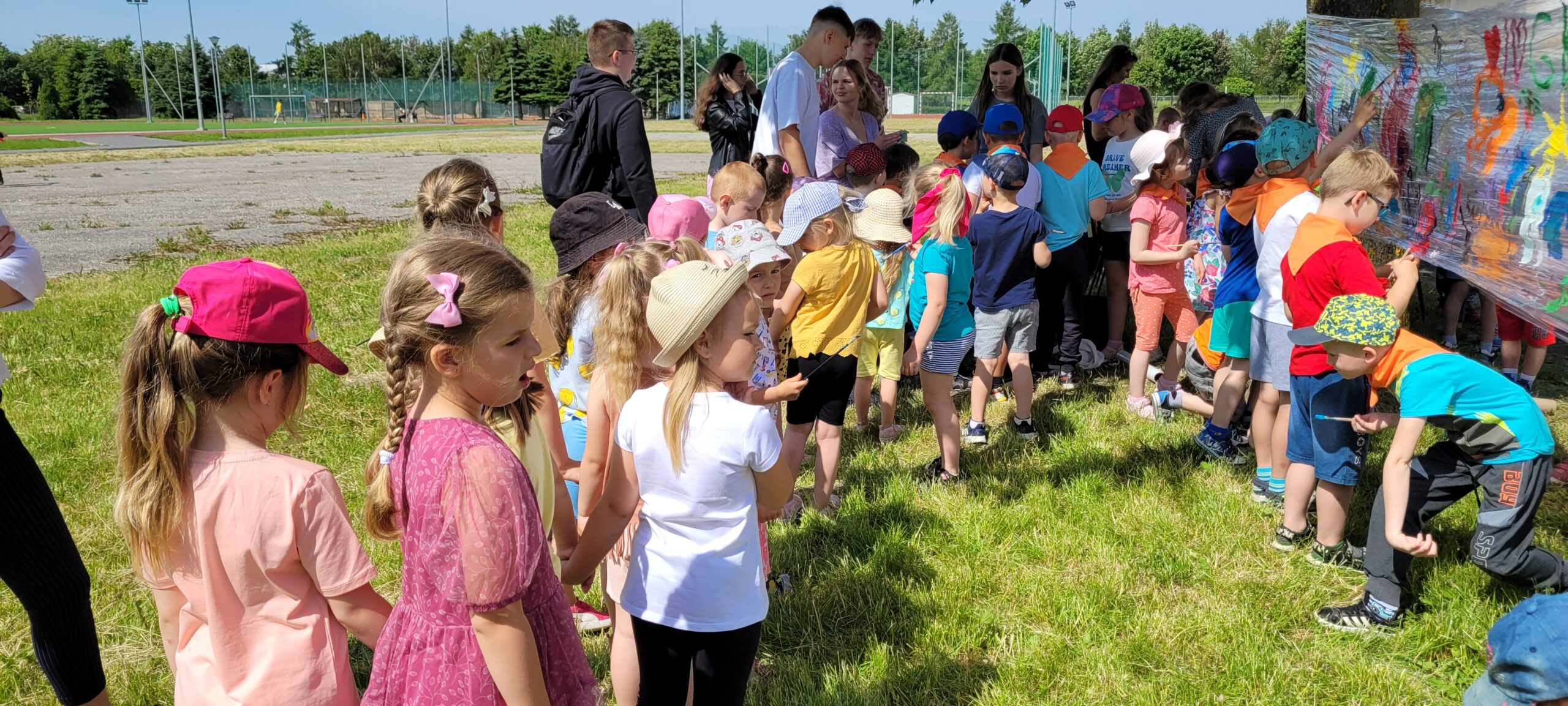 Nasza grupa udała się na tereny obiektów sportowych przy Zespole Szkół im.Króla Kazimierza Jagiellończyk w Łęcznej przy ul.Bogdanowicza,gdzie uczniowie z tej szkoły wraz z nauczycielami przygotowali wiele atrakcji dedykowanych najmłodszym dzieciom.Przedszkolaki chętnie korzystały z zabaw i zajęć jakie były dla nich przygotowane,kącików eksperymentów czy zajęć sportowych.