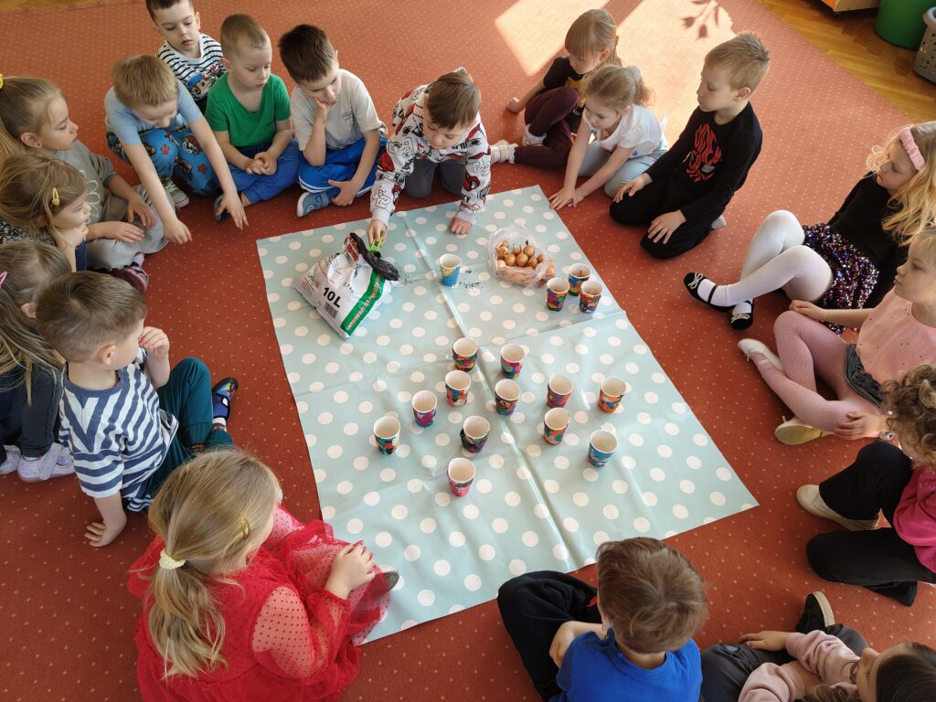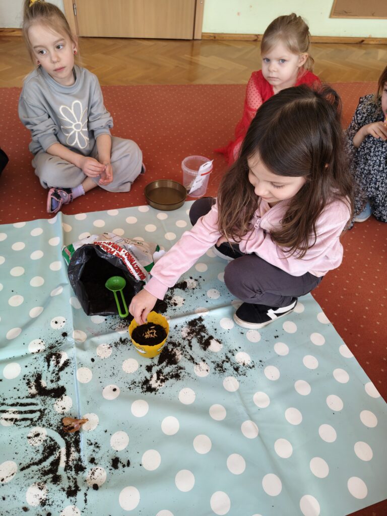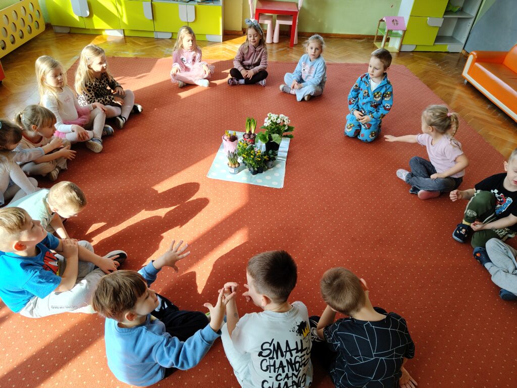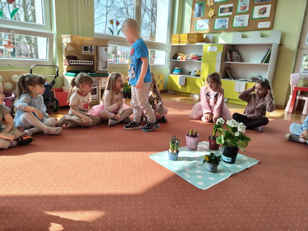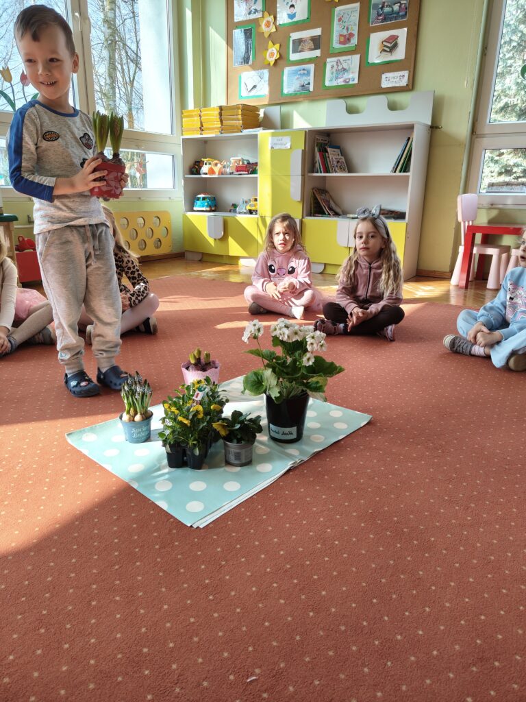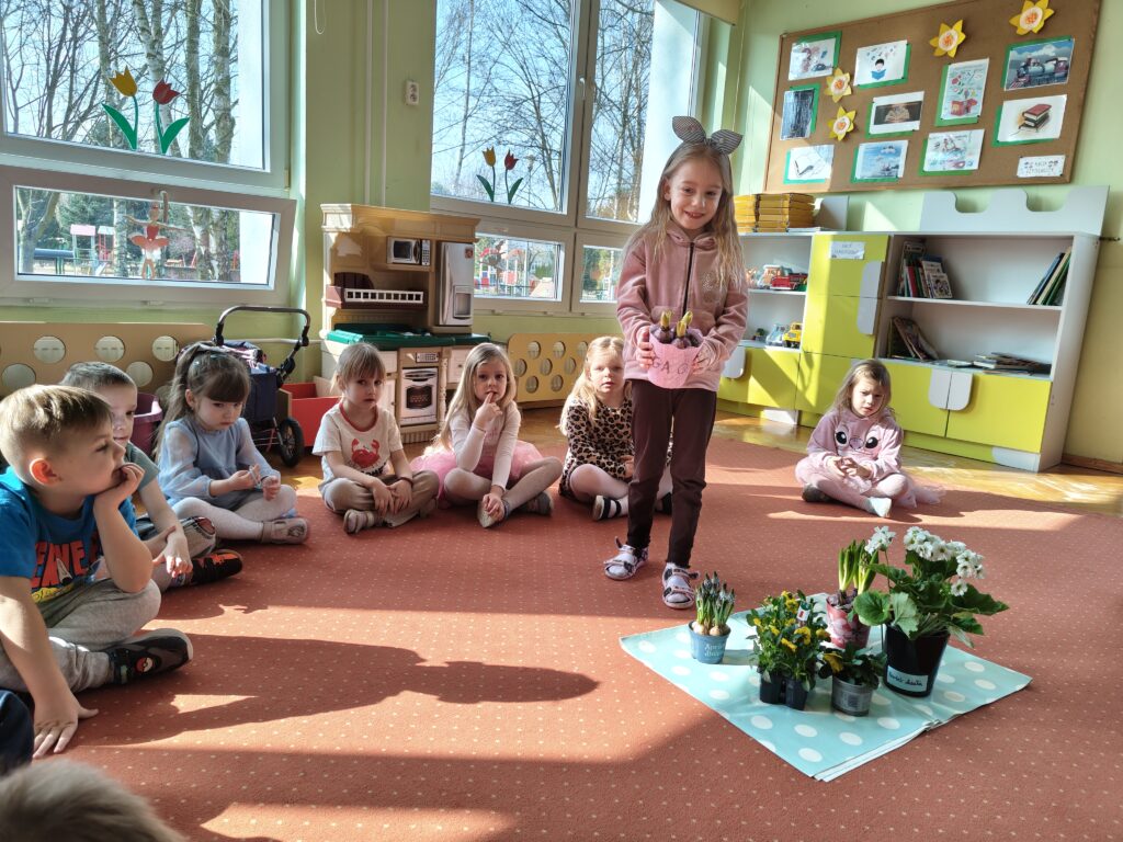 Dzieci z grupy „Pszczółki” założyły wiosenny ogródek. Posiały owies i rzeżuchę. Posadziły cebulę na szczypior. Przyniosły sadzonki kwiatów do kącika przyrody. Przedszkolaki wykonywały wiosenne prace plastyczne oraz uczyły się piosenki na powitanie wiosny. Dzieci dokonywały obserwacji przyrodniczych, aby upewnić się czy widać zwiastuny nowej pory roku. Utrwaliły sobie także wiedzę na temat marcowej pogody i wiosennych powrotów ptaków. Poruszana tematyka stanowiła również bazę do zabaw matematycznych oraz muzyczno-ruchowych.