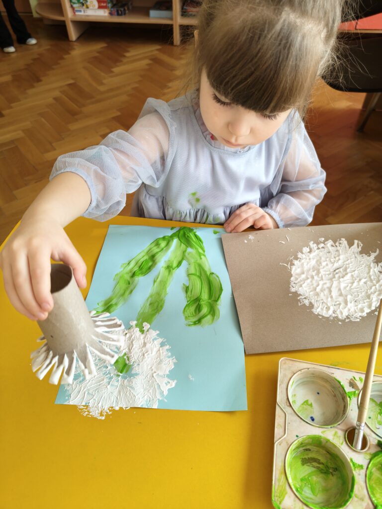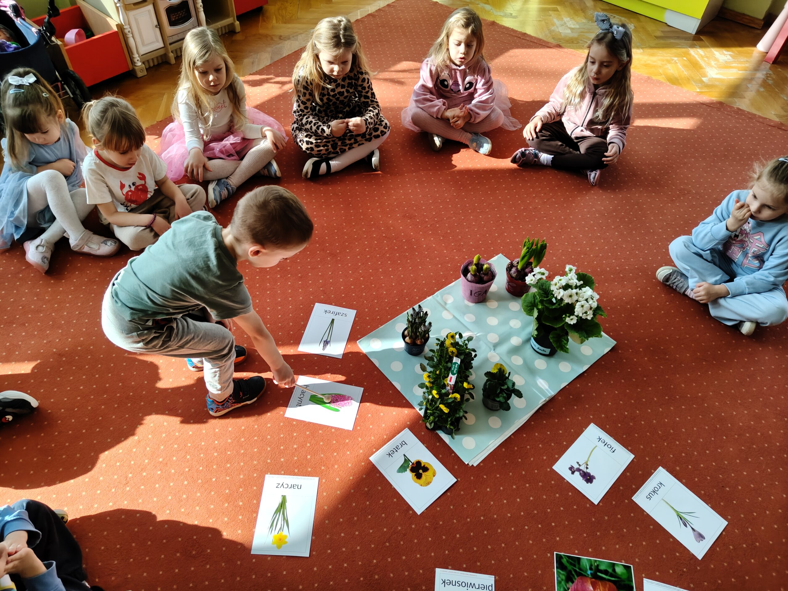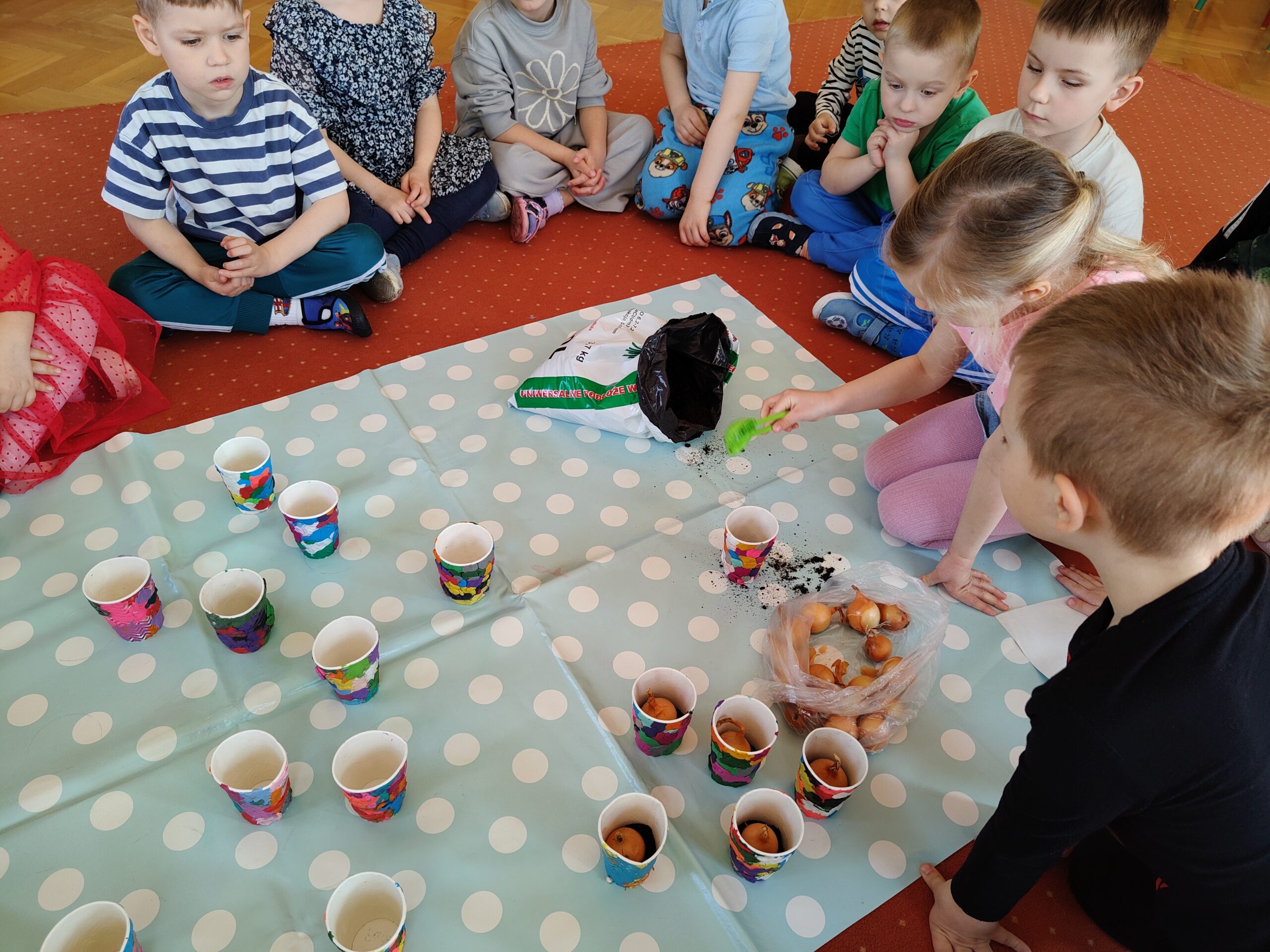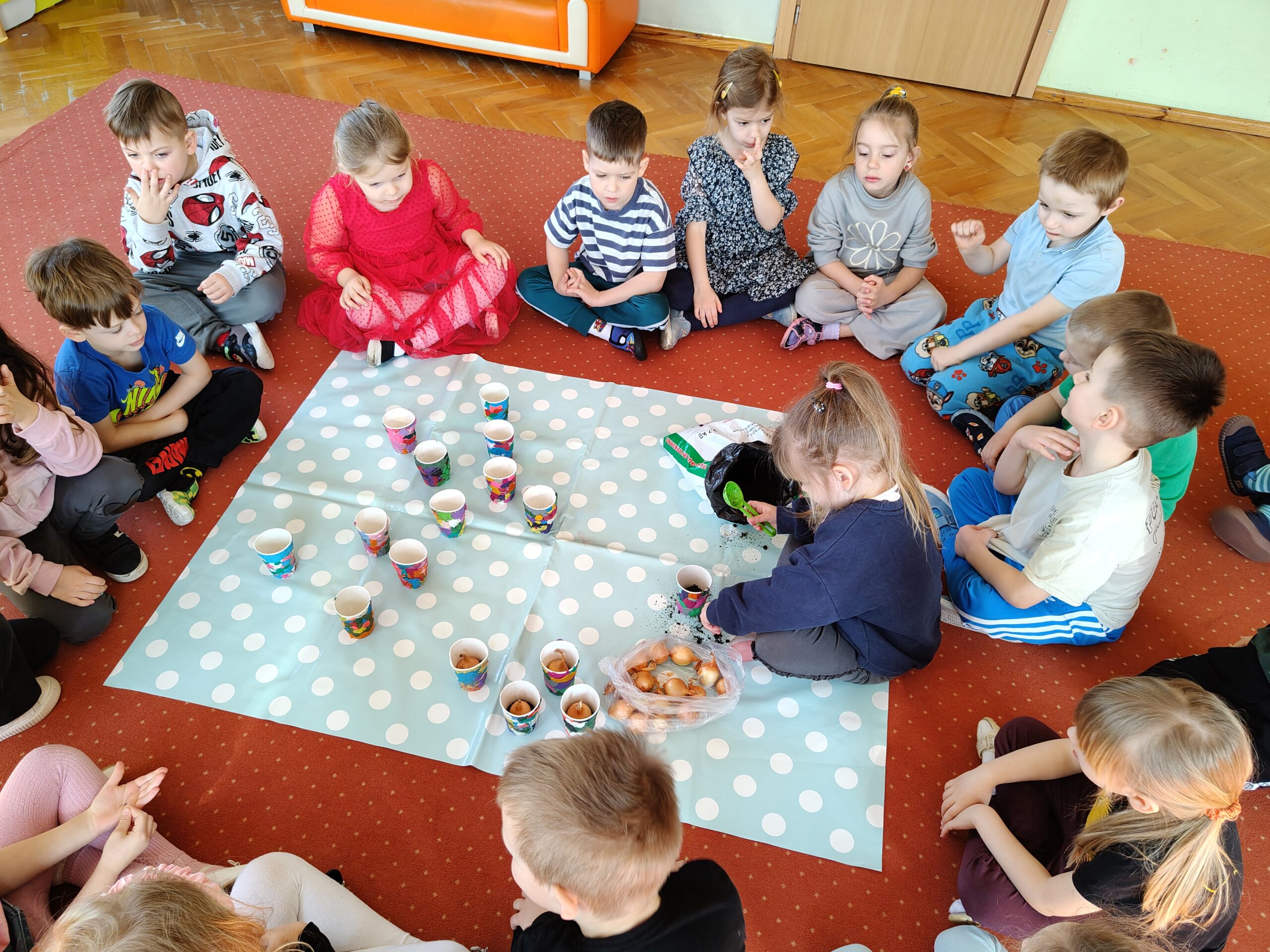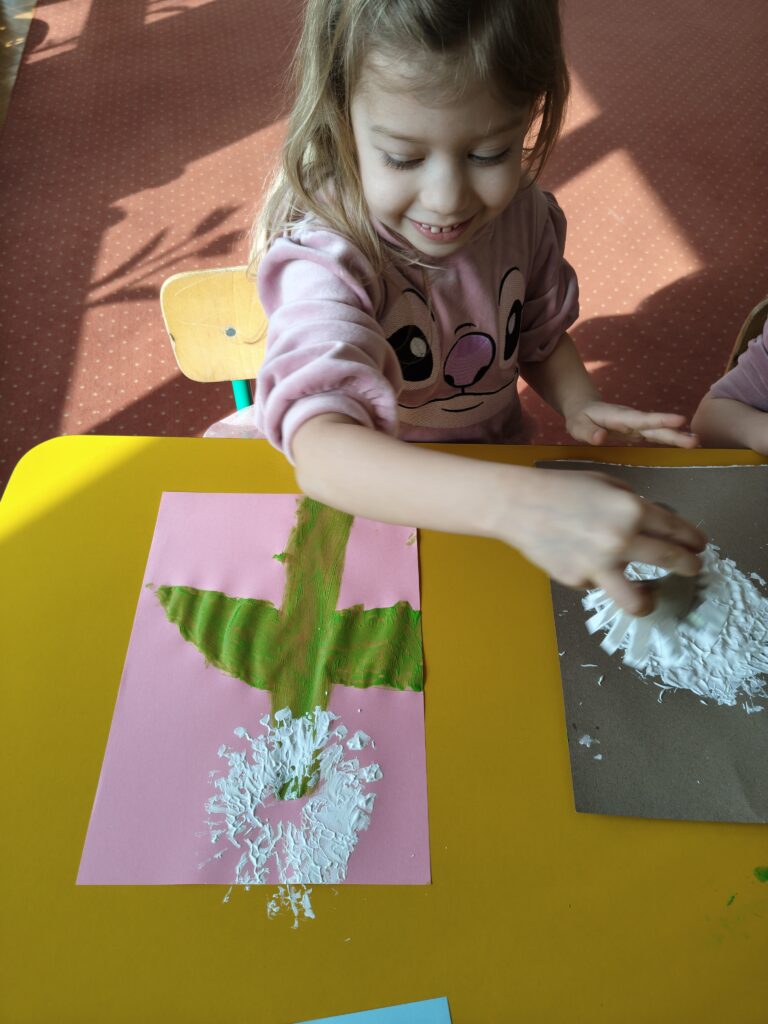Dzieci z grupy „Pszczółki” założyły wiosenny ogródek. Posiały owies i rzeżuchę. Posadziły cebulę na szczypior. Przyniosły sadzonki kwiatów do kącika przyrody. Przedszkolaki wykonywały wiosenne prace plastyczne oraz uczyły się piosenki na powitanie wiosny. Dzieci dokonywały obserwacji przyrodniczych, aby upewnić się czy widać zwiastuny nowej pory roku. Utrwaliły sobie także wiedzę na temat marcowej pogody i wiosennych powrotów ptaków. Poruszana tematyka stanowiła również bazę do zabaw matematycznych oraz muzyczno-ruchowych.