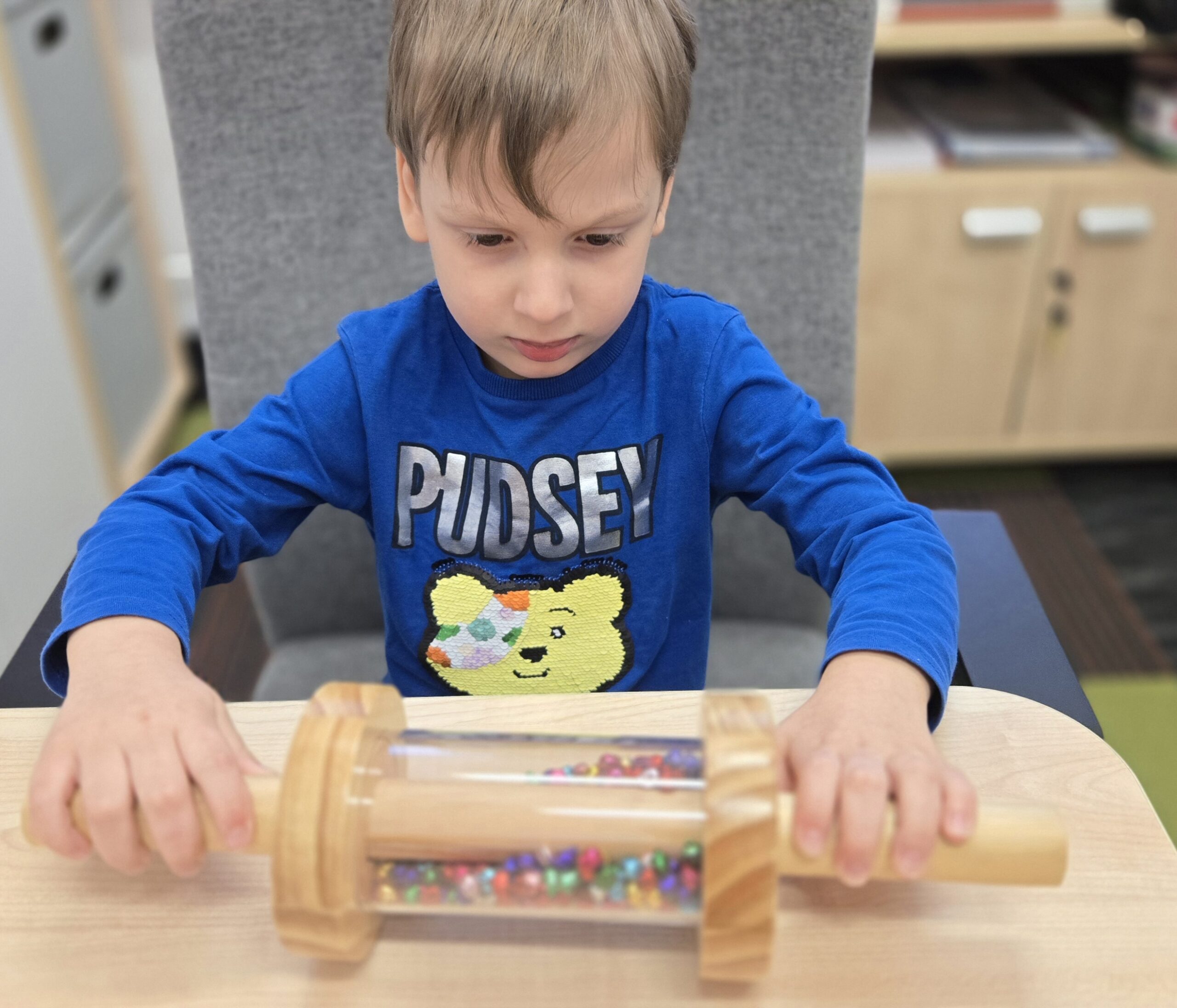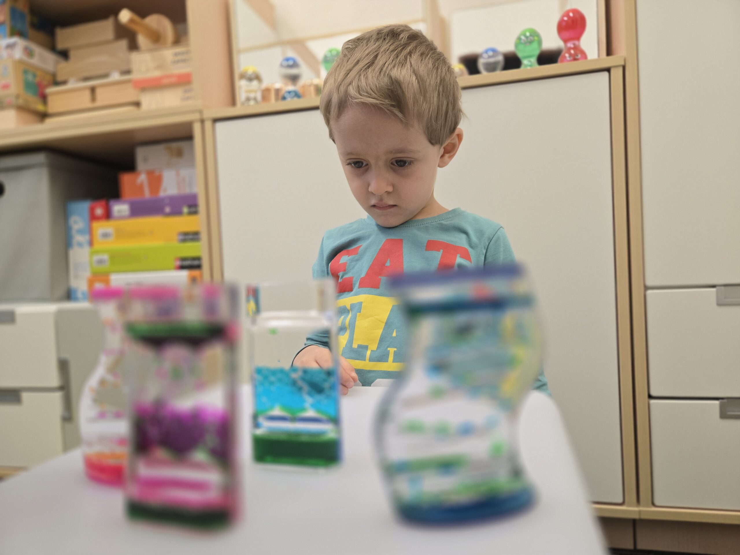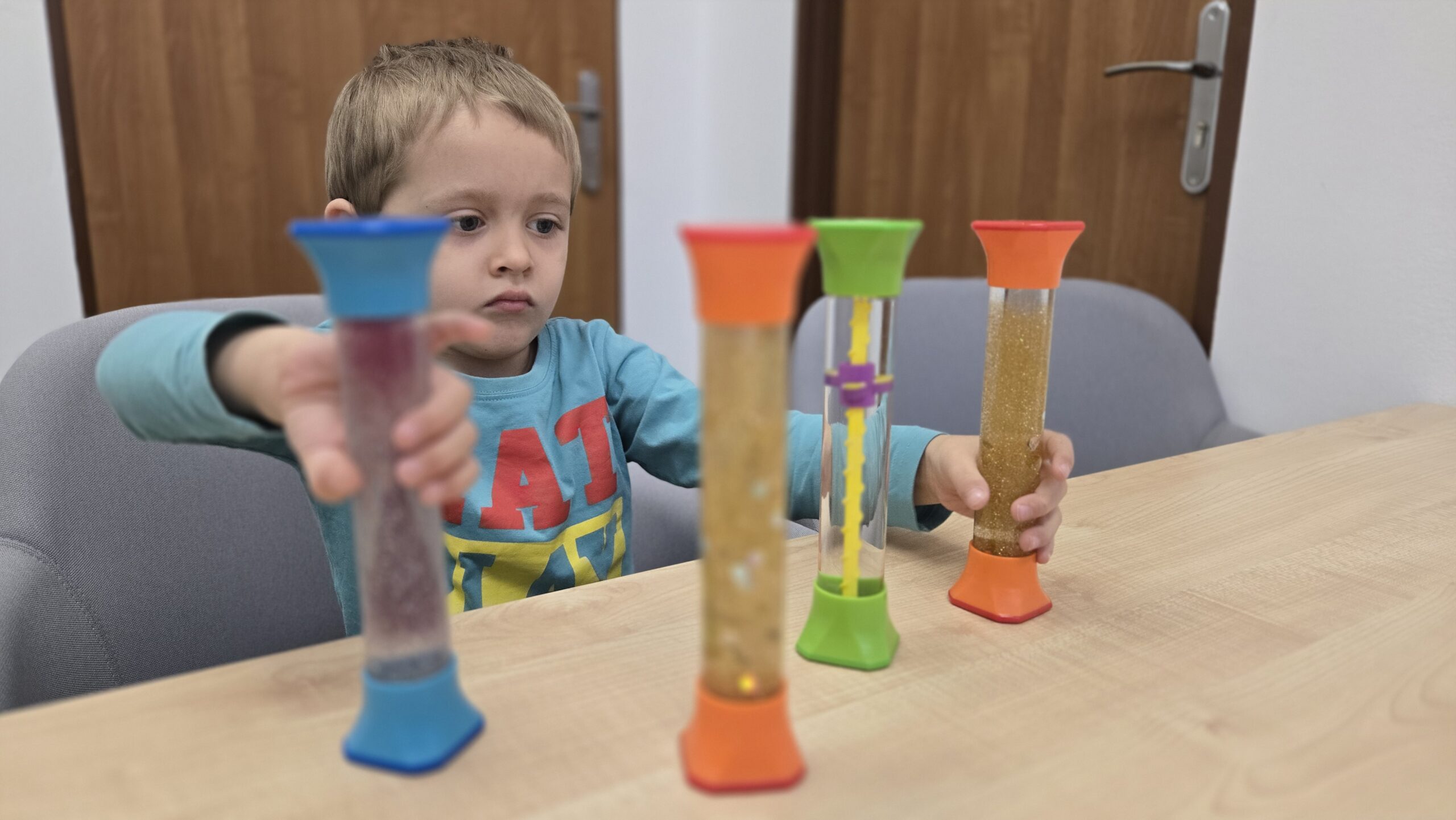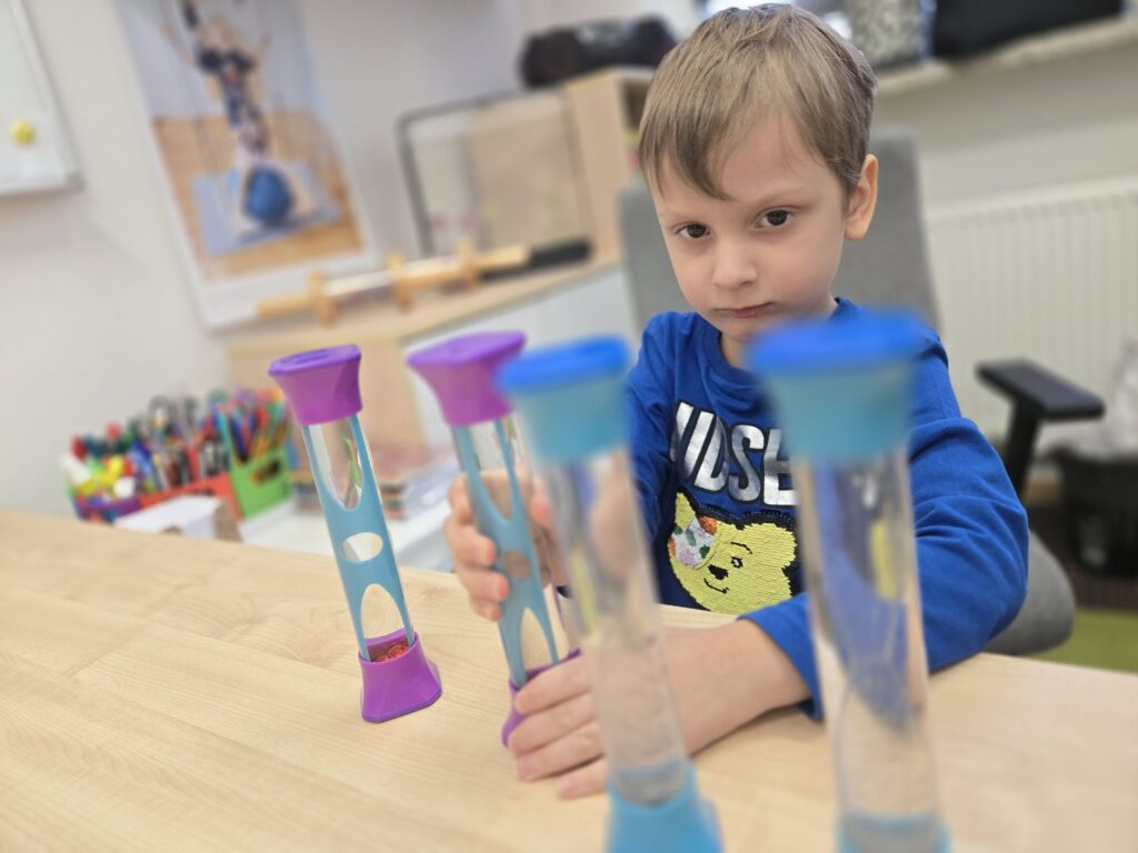 W gabinecie terapii zajęciowej skupiamy się na kreatywnych doświadczeniach zmysłowych. Prowadzone zajęcia są ekscytującą eksploracją jaskrawych kolorów, nietuzinkowych materiałów zapewniających naszym podopiecznym wspieranie praktycznej nauki oraz angażowanie wszystkich zmysłów. Obserwowanie hipnotyzującego ruchu w tubach sensorycznych zapewnia dzieciom ze specjalnymi potrzebami edukacyjnymi wizualne a także kojące wrażenia zmysłowe.