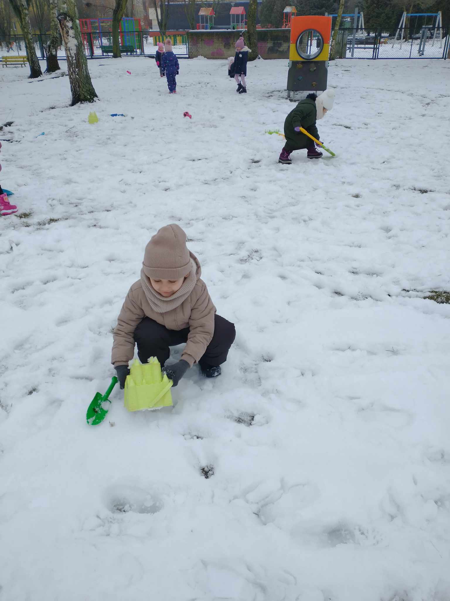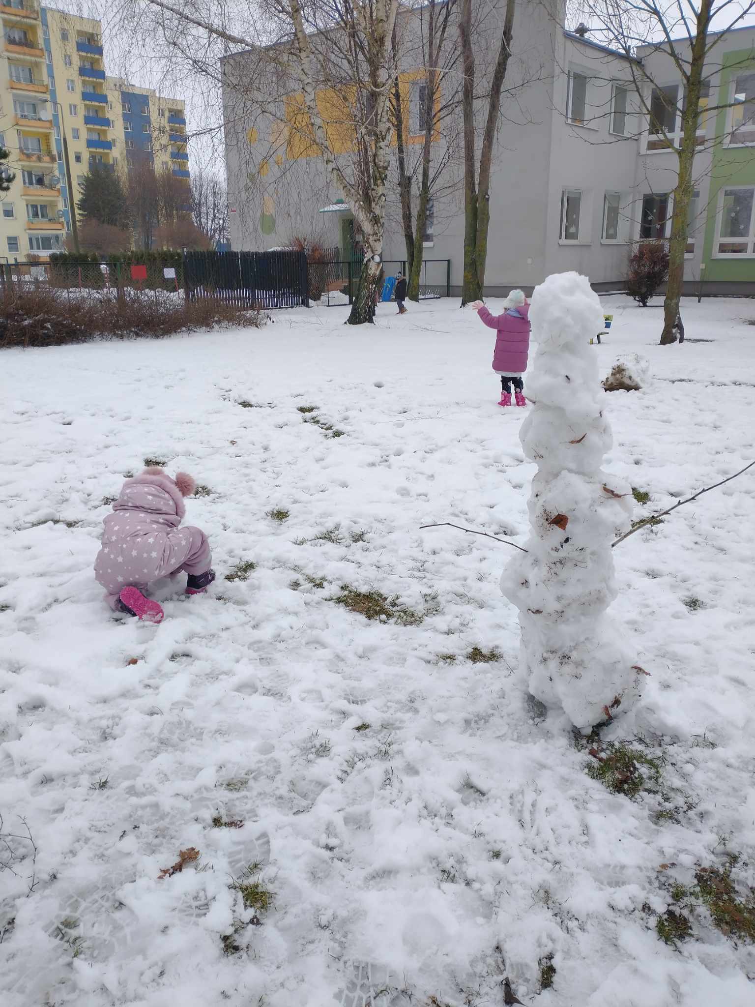 Niestety w tym roku zima poskąpiła nam śniegu, ale dzieci z grupy „Sowy” wykorzystały te dni, kiedy można było pobawić się w ogrodzie przedszkolnym wykorzystując śnieżny puch. Przedszkolaki lepiły bałwana, rzucały śnieżkami, próbowały kopać łopatkami drogi i chodniki w śniegu. Pomimo czerwonych nosków i policzków, humory dopisywały, a po powrocie do przedszkola bardzo smakował wszystkim ciepły obiad.
