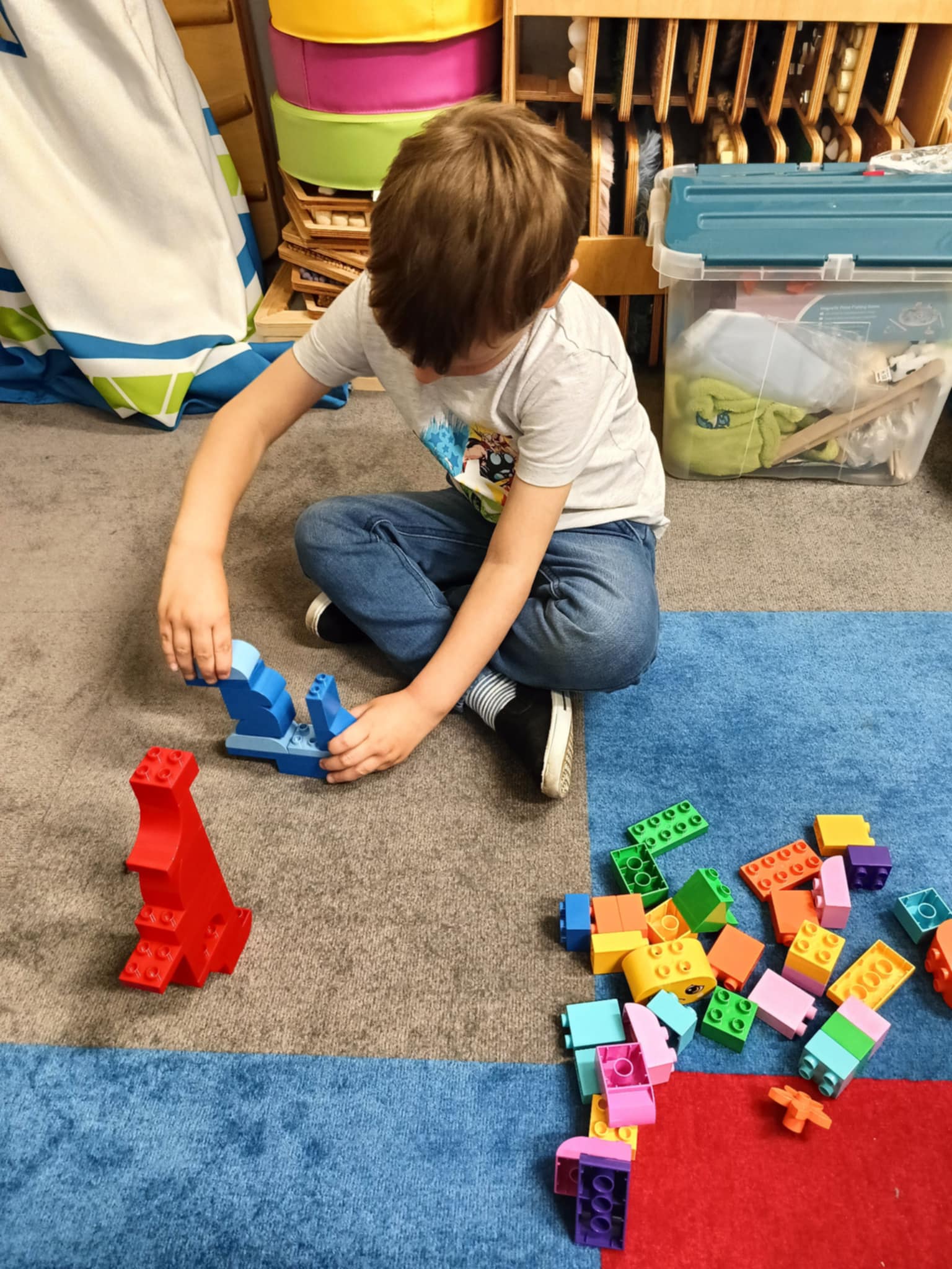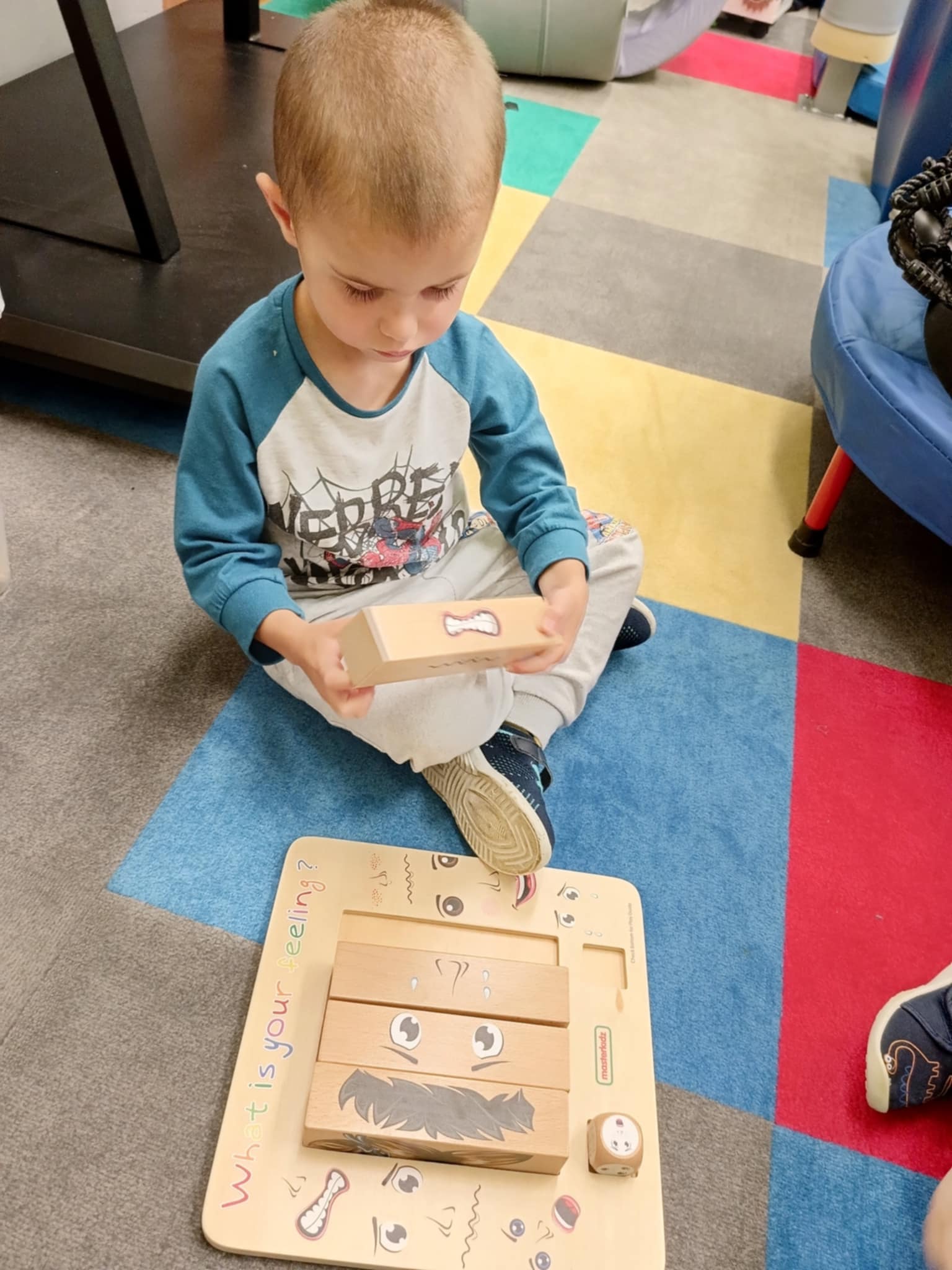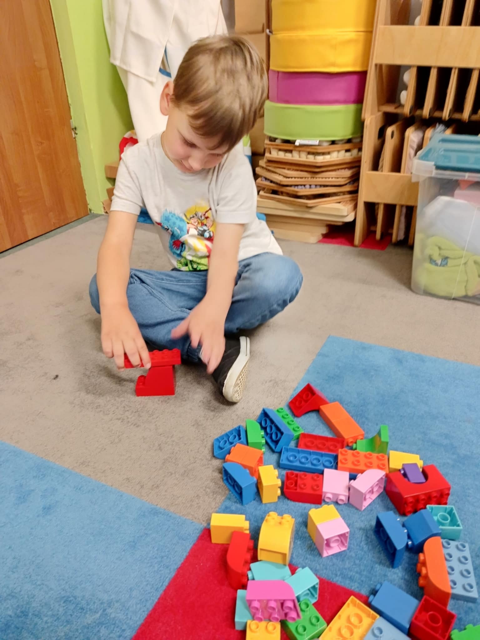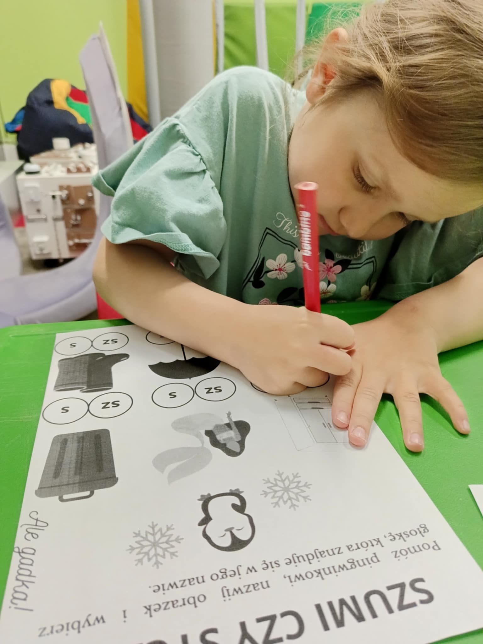 Logopedia to dziedzina, która wspiera rozwój mowy i komunikacji dzieci poprzez różnorodne ćwiczenia i zabawy. W trakcie naszych zajęć wykorzystujemy wiele kreatywnych metod, które pomagają dzieciom w doskonaleniu umiejętności językowych i artykulacyjnych. Przykładem takich zajęć jest kompleksowa zabawa naprzemienna, łącząca różnicowanie kolorów, nazywanie emocji, części ciała oraz naukę budowania zdań. Podczas zajęć dzieci miały okazję rozpoznawać, wskazywać i nazywać kolory oraz przedmioty na obrazkach. Ta aktywność rozwijała rozumienie poleceń, wspomagała rozwój słownictwa oraz koncentrację uwagi. Dodatkowo, wprowadzaliśmy ćwiczenia związane z emocjami — dzieci uczyły się rozpoznawać i nazywać uczucia, takie jak radość, smutek, złość czy zdziwienie, co sprzyjało ich rozwojowi społecznemu i emocjonalnemu. Kolejnym ważnym elementem była nauka budowania zdań według prostych wzorców. Dzieci układały puzzle, nazywały zawody i ich atrybuty, co pozwalało rozwijać logiczne myślenie, umiejętności gramatyczne, a także mówienie w sposób bardziej uporządkowany i zrozumiały. W ramach zajęć wprowadzaliśmy również ćwiczenia artykulacyjne, które miały na celu poprawę wymowy i płynności mowy dzieci.