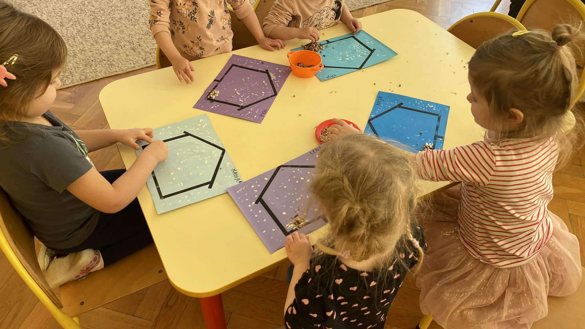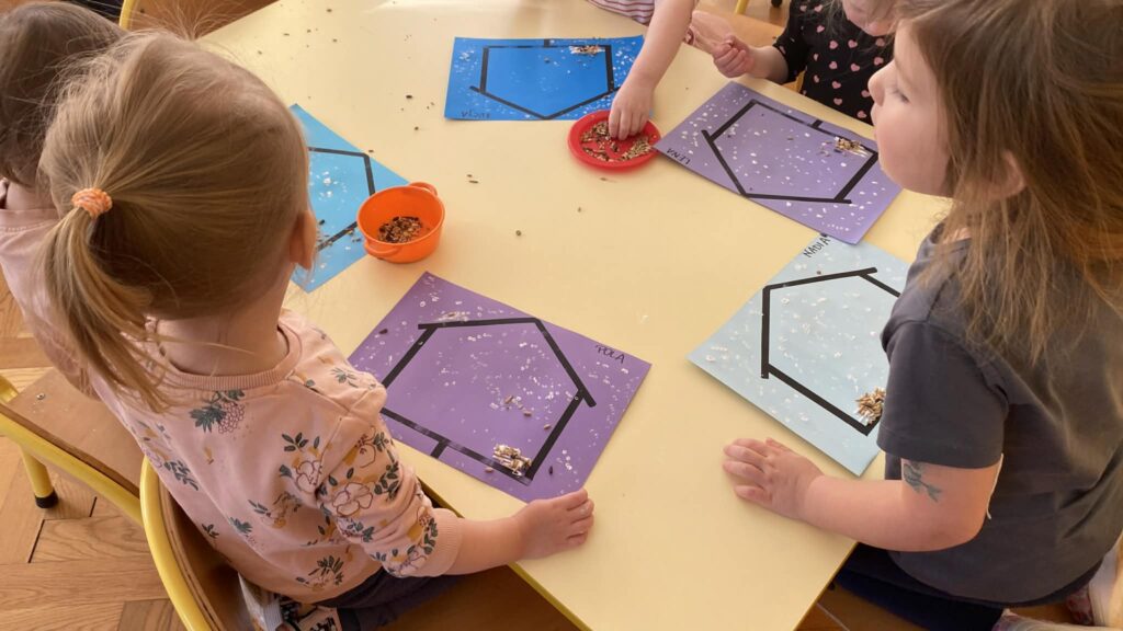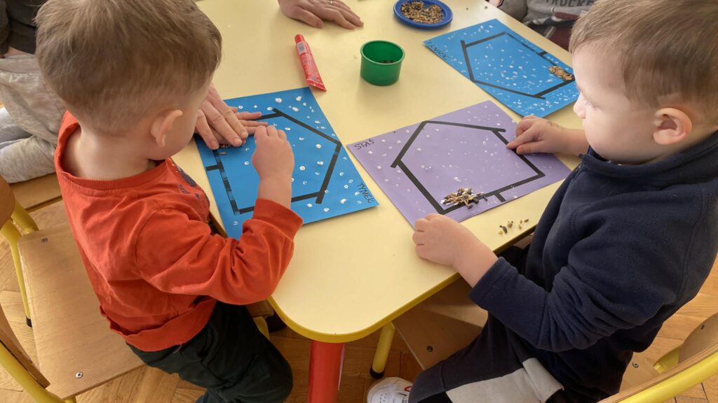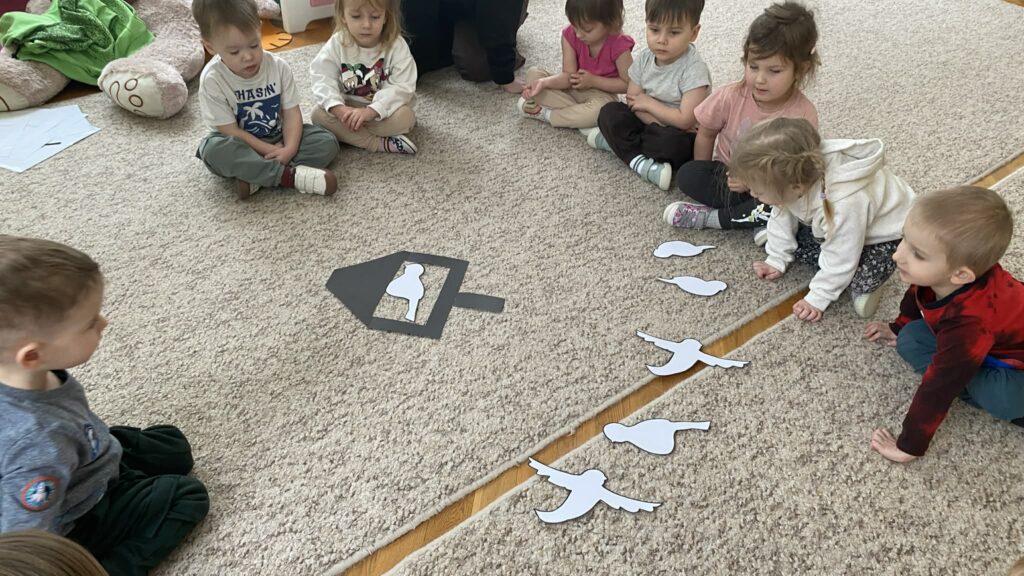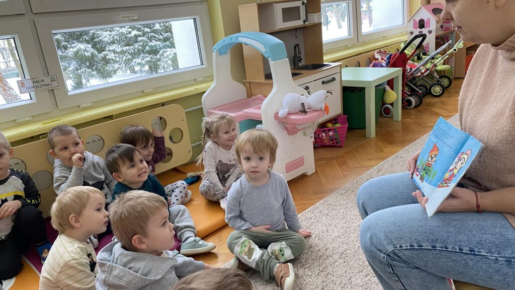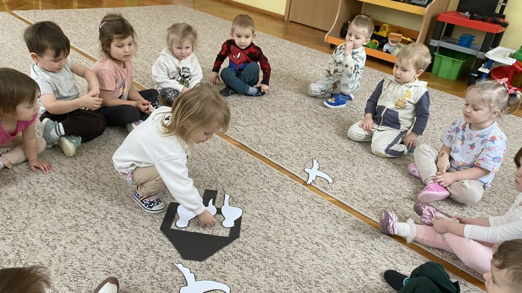 Rozmawialiśmy o tym, kto zapada w głęboki sen, kto zmienia kolor futerka, a komu warto zostawić ziarenka w karmniku. Przedszkolaki z dużym zaangażowaniem uczyły się rozpoznawać ślady na śniegu i sprawdzały, czy niedźwiedź naprawdę chrapie do wiosny.
